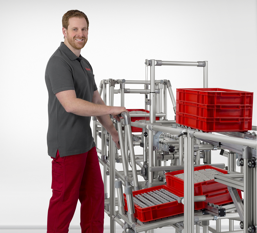 Karakuri applications utilise gravity, muscle power and leverage to simplify processes and improve workflows. Ultimately, using Karakuri to improve workflows and thus boost efficiency results in solutions that are less expensive than traditional automation projects. The new LCA components can be combined to produce a comprehensive system with a whole range of easy-to-use options for implementing Karakuri applications. item Industrietechnik thus offers an all-in-one package – as a true one-stop supplier.