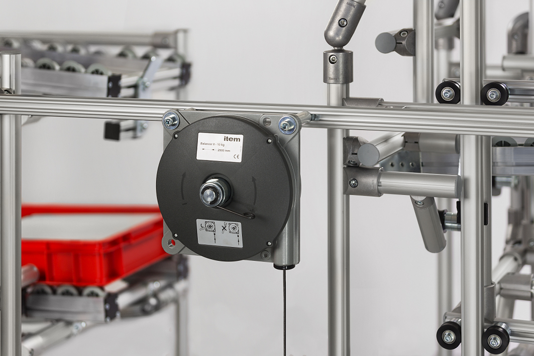 Automating production processes – it is a goal that many companies are pursuing but one that often involves high costs and complex restructuring work. Fortunately, item Industrietechnik is here to help. item offers numerous components that can be used to simplify processes based on purely mechanical motion and thus implement Karakuri (also known as low cost automation, or LCA). item has now expanded its portfolio of Karakuri products, adding more components to the range. The new elements for guiding and redirecting cables can be used to build compact constructions that take the strain off workers and lead to faster, more efficient working processes.
